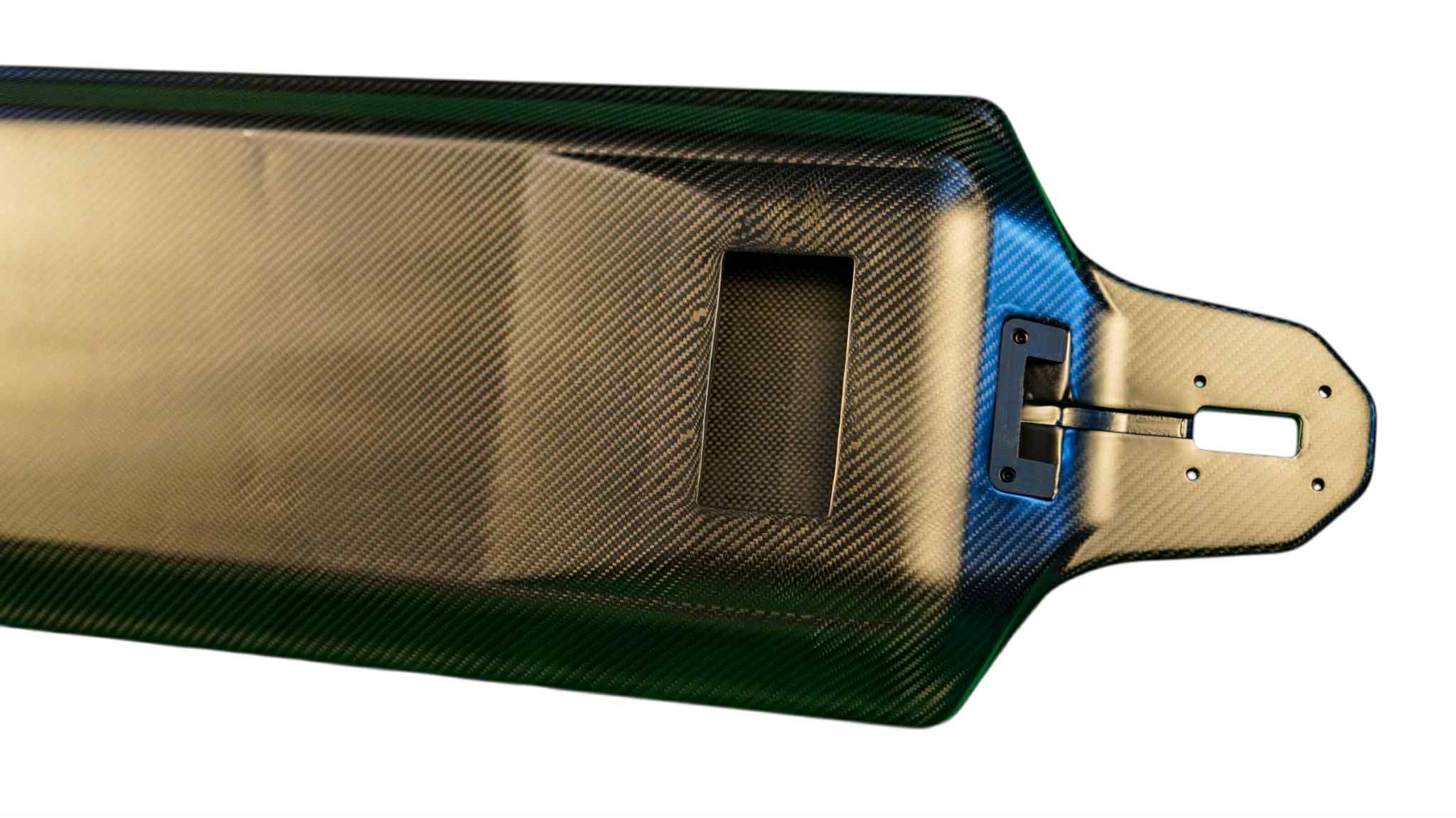 This deck features a Carbon Twill weave chosen for it's high tensile strength for longitudinal direction loads.